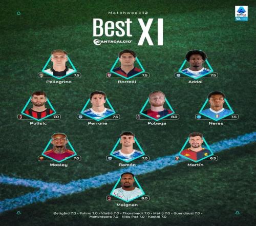 意甲第12轮最佳阵:迈尼昂、普利希奇领衔,内雷斯、利马入选 -